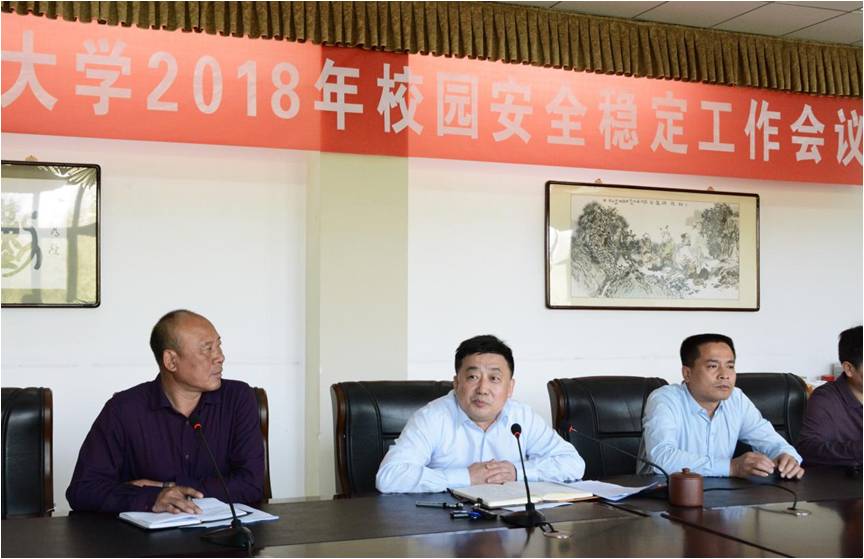 保卫处负责人对学校2017年安全稳定工作进行总结,并对学校2018年安全稳定工作进行了安排部署,同时对自治区“平安校园”创建工作实施方案、指标体系、考核制度及相关要求进行了解读,从目标与任务、工作原则、实施步骤、责任分工、组织领导、总体要求等方面对学校2018年“平安校园”创建工作做了详细的部署。