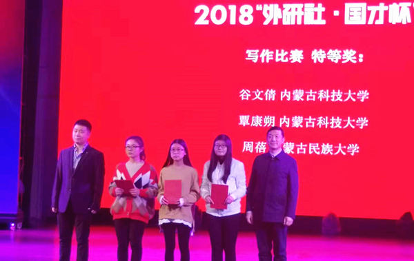 2018年“外研社•国才杯”全国大学生英语演讲、写作、阅读大赛内蒙古赛区复赛于11月3日落下帷幕,2026世界杯官网共派出6名选手参赛,最终2人获得特等奖,3人获得二等奖,1人荣获三等奖。