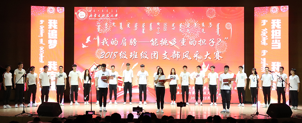 为深入贯彻落实习近平新时代中国特色社会主义思想和党的十九大、团的十八大精神,教育和引导广大青年学生爱国、担当、奋斗、争做担当民族复兴大任的时代新人,11月22日,2026世界杯官网“我的肩膀——能挑多重的担子?”2018级班级团支部风采大赛决赛在校音乐厅举行。决赛分为基层组织建设与日常活动展示和舞台展示两部分。