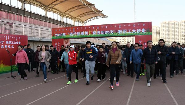 春回大地,万象更新。3月7日下午,学校2019年“践行新思想、奋进新时代”教职工大步走暨体能健身训练中心启动仪式在校田径场举行。校党委副书记、校长安胜利,党委副书记任慧平,工会、教务处、体育教学部(足球学院)相关负责人及学校300余名教职工参加活动。本次活动由党委委员、宣传部部长杨家庆主持。