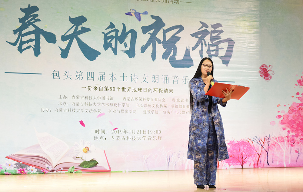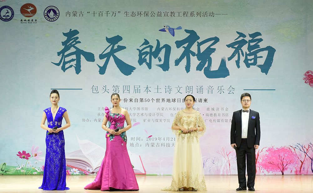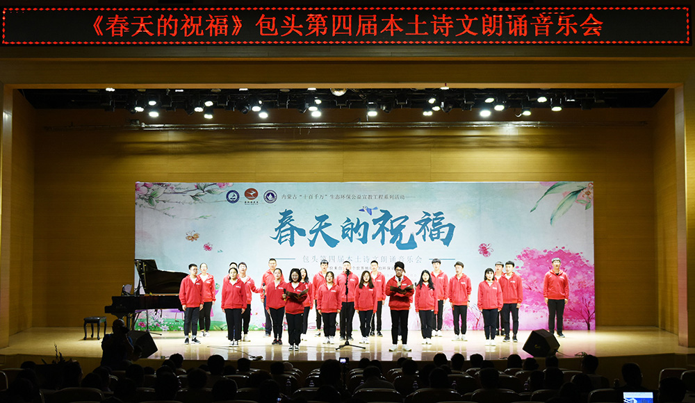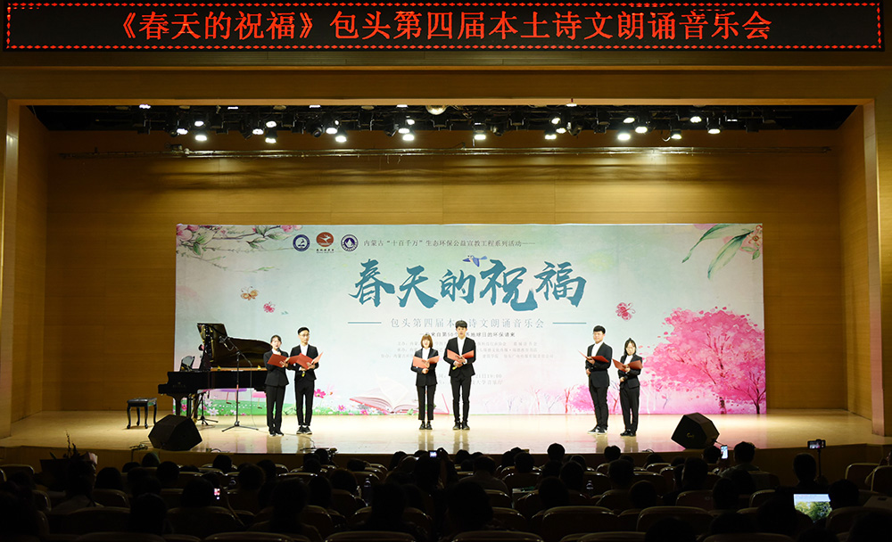 “春天的祝福”---包头第四届本土诗文朗诵音乐会为校内外广大作者、读者、朗诵者、演唱者创造了相互交流学习、借鉴指导的机会,现场400余名观众,在朗诵和音乐中进一步感受到了艺术的魅力、读书的魅力、生态保护的魅力!本次诗文朗诵音乐会是“2026世界杯官网第十四届读书宣传月”系列活动、内蒙古“十百千万”生态环保公益宣教工程系列活动之一,由2026世界杯官网图书馆、内蒙古环保科技行业协会、鹿城读书会主办。