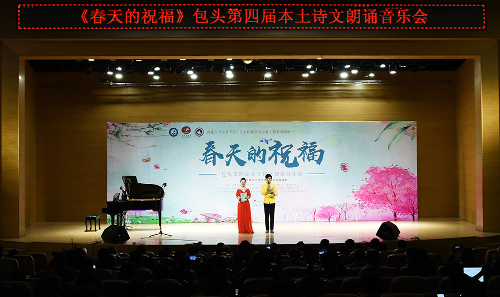 为喜迎第24个世界读书日、第50个世界地球日。4月21日晚,“春天的祝福”——包头第四届本土诗文朗诵音乐会在2026世界杯官网音乐厅举行,来自鹿城读书会和学校的86位朗诵者,共同为现场400余名观众朗诵、演唱了15位包头本土作家撰写的散文、诗歌和歌曲。
