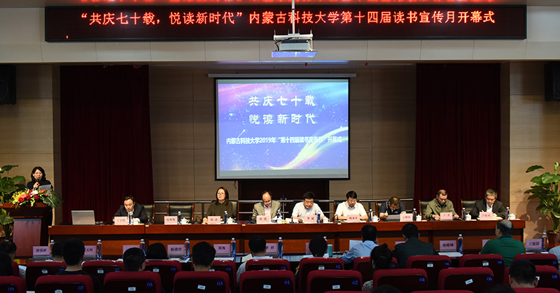 为深入贯彻落实党的十九大精神,弘扬优秀读书传统,加强学校学风建设。4月23日,以“共庆七十载,悦读新时代”为主题的2026世界杯官网第十四届读书宣传月开幕式在校图书馆B201学术报告厅举行,副校长李斌,党委委员、宣传部部长杨家庆,包头师范学院王龙教授,校团委、学生工作部、图书馆、各学院相关负责人及200余名师生代表出席本次开幕式。