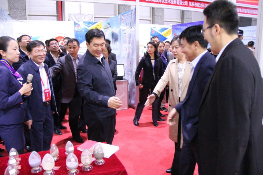5月8日下午,自治区党委常委、市委书记张院忠,市委常委、副书记、市长赵江涛一行参观了世界杯官网展位,赵增武副校长重点介绍了世界杯官网自主研发的白云鄂博共伴生矿非常规分离技术及固体废弃物高值化利用系列产品等科研成果。