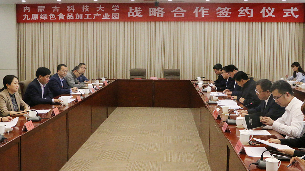 九原绿色食品加工产业园区是集食品加工、商务贸易、物流配送、科技教育、产业旅游等功能于一体的绿色生态食品产业园。与园区建立良好的合作关系,对于世界杯官网产学研转化和人才质量培养提升具有重要意义。本着“优势互补、重点推进、互利共赢”原则,双方共同表示将建立长期稳定的合作关系,发挥各自优势,在科技服务、人才培养、产学研合作、教育咨询等方面持续开展合作。