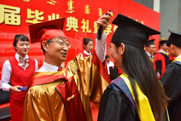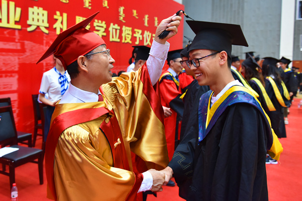 安胜利和其他主礼教授、嘉宾为毕业生颁发学位证书,拨穗正冠,在场师生们共同见证了这一温暖而庄重的时刻。