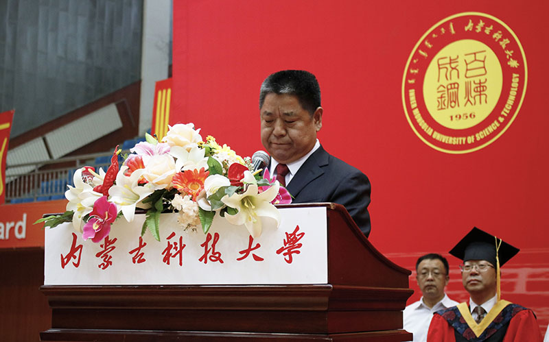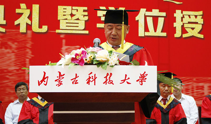 6月28日上午,学校2019届毕业典礼暨学位授予仪式在校体育馆举行。校党委副书记、校长安胜利,副校长李斌、冯志强、赵增武,党委委员、宣传部部长杨家庆,党委委员、党政办公室主任田立志,党委委员、教务处处长赵永旺,学工部、团委、研究生院、招生就业处、保卫处、各学院相关负责人,2019届毕业生代表参加典礼。副校长冯志强主持典礼。