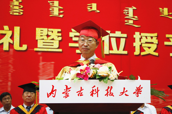 博士毕业生代表材料与冶金学院龚志军发言。讲述了在科大求学与成长的故事,表达了对母校培养的感谢与祝福。