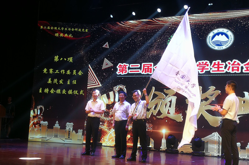 闭幕式上,全国大学生冶金科技竞赛工作委员会授予世界杯官网第三届全国大学生冶金科技竞赛的承办权,并完成了会旗交接仪式。