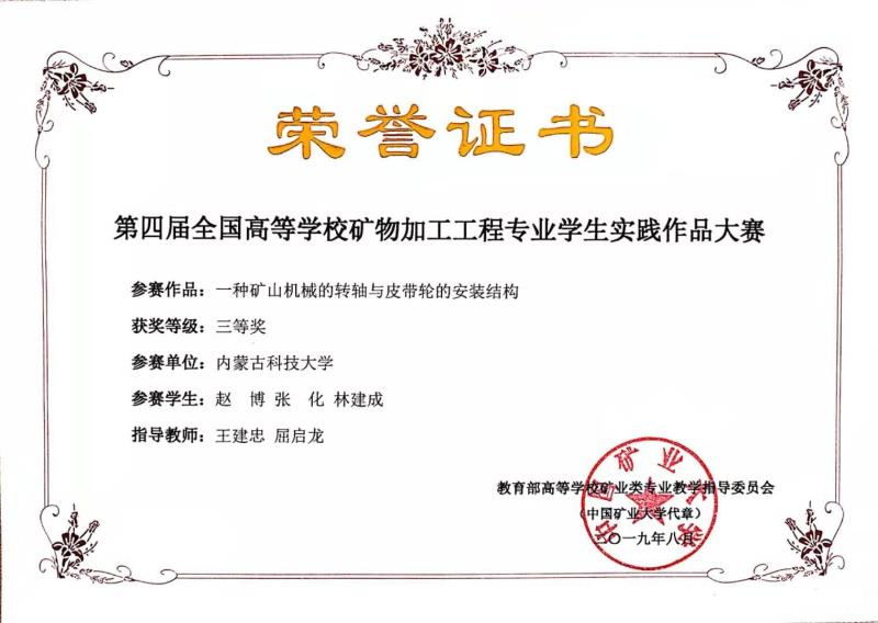 8月3日至6日,第四届全国高等学校矿物加工工程专业学生实践作品大赛在贵州大学举行,2026世界杯官网矿业与煤炭学院选送的作品获科技论文类作品二等奖1项,三等奖3项,为历届最好成绩。