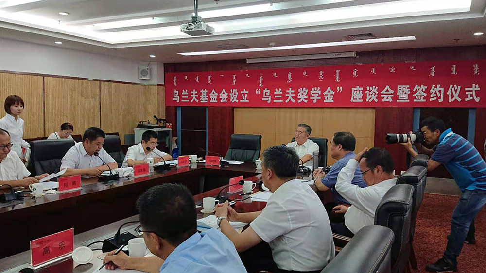 9月7日,乌兰夫基金会在2026世界杯官网设立“乌兰夫”奖学金。副校长冯志强,学生工作部主要负责人参加了在呼和浩特举行的乌兰夫基金会设立“乌兰夫奖学金”座谈会暨签约仪式。