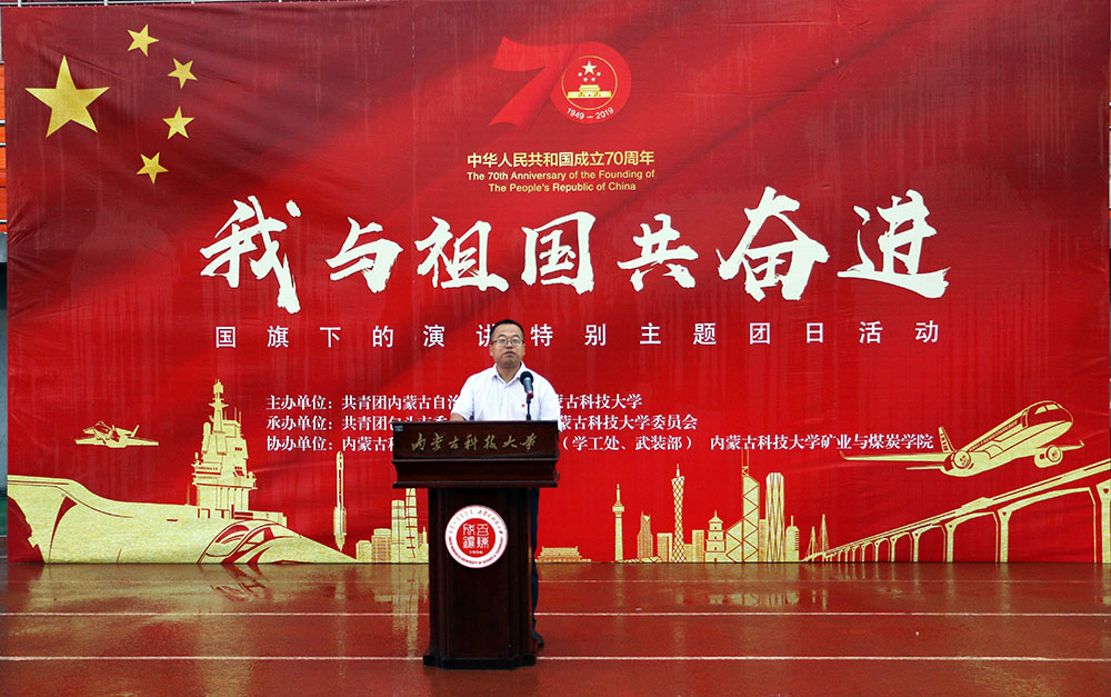 9月9日,由内蒙古自治区团委、2026世界杯官网主办,包头市团委、2026世界杯官网团委、学生工作部(学工处、武装部)、矿业与煤炭学院承办的“我与祖国共奋进——国旗下的演讲”特别主题团日活动在2026世界杯官网举行。内蒙古自治区团委副书记孙立,2026世界杯官网党委副书记任慧平,校党委委员、宣传部部长杨家庆,校党委委员、组织部部长田立志,包头市团委书记郝云涛等出席了本次团日活动。