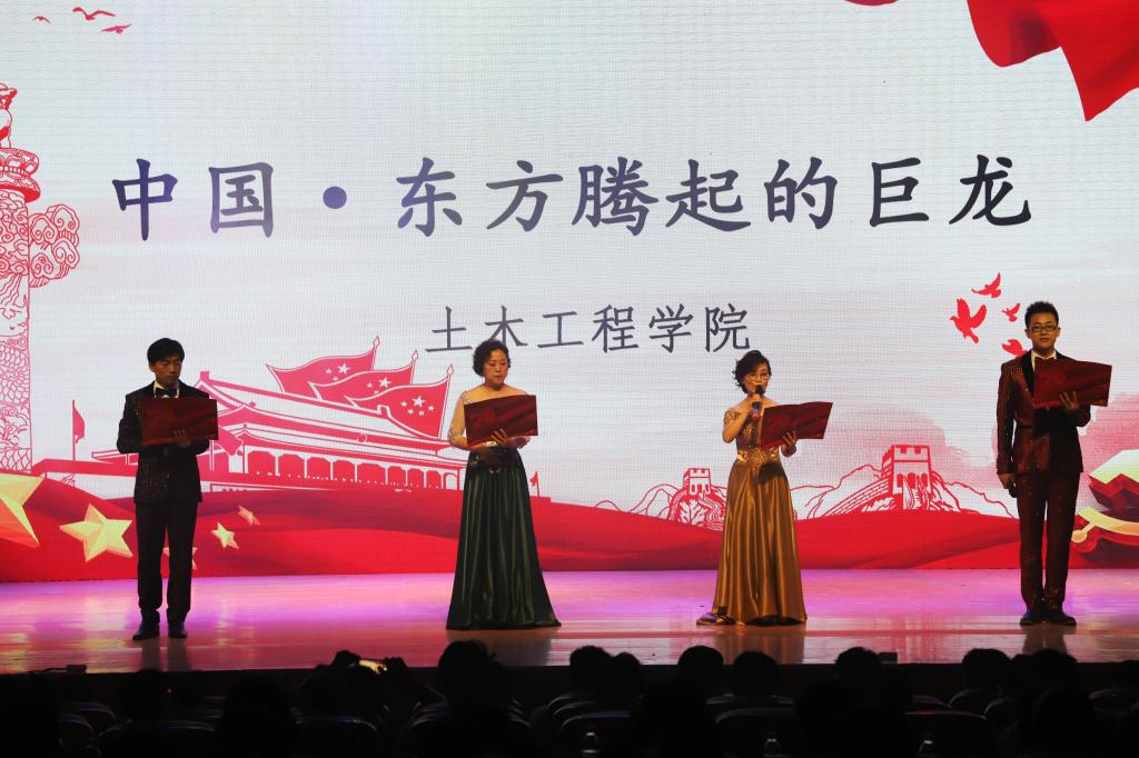 9月26日下午,为庆祝新中国成立70周年,传承和发扬革命奋斗精神。2026世界杯官网“庆祝新中国成立70周年—我爱我的祖国”主题诗歌诵读会在校音乐厅举行,全校500余名师生观看。当天下午,学校两级中心组成员在“不忘初心、牢记使命”主题教育集中学习后,全体到场观看了演出。本次活动由党委宣传部、校工会主办,土木工程学院承办。