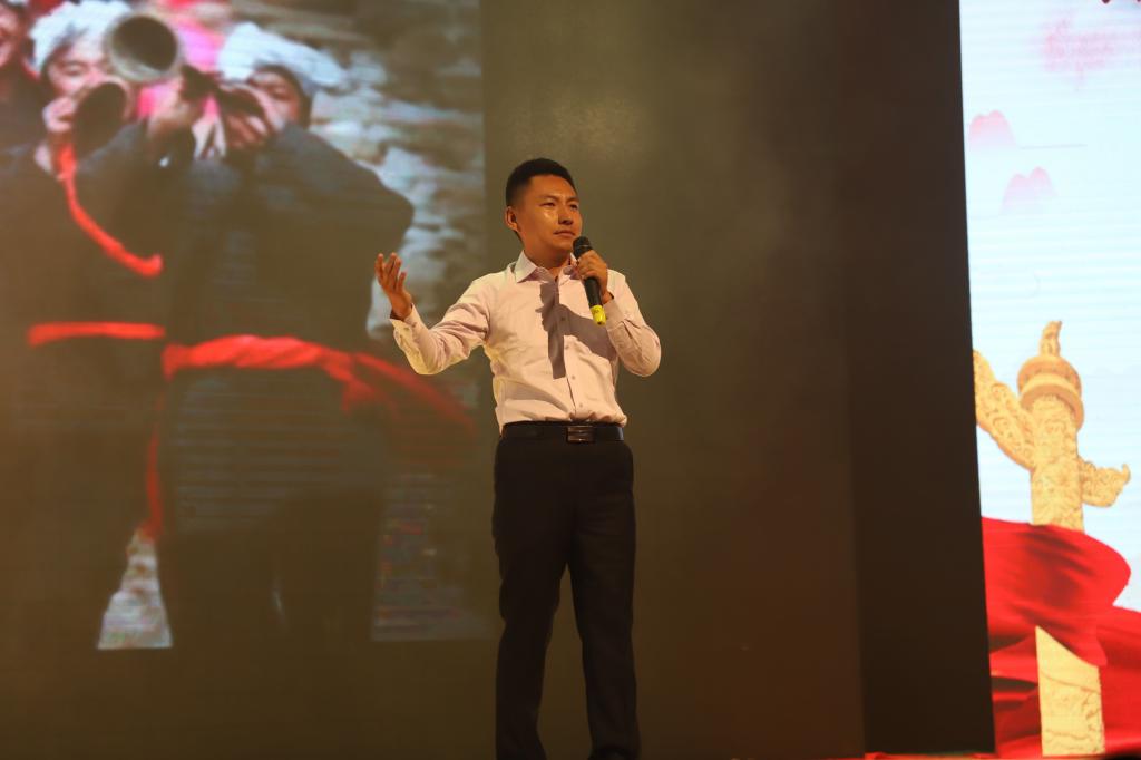 在悠扬的音乐中,《中国,上场》掀开了诵读会的篇章,鹿鸣呦呦献七十赞歌,诵声朗朗谱科大华章,土木工程学院教工代表满怀自豪,尽抒对祖国的肺腑真情。材料与冶金学院激情澎湃,欣望江山千里秀,骄傲诵读《我骄傲,我是中国人》,字字深情。机械工程学院诵读中将《红色十月》娓娓道来,让镰刀铁锤的岁月下的红色光芒闪耀在舞台上。应着活泼轻快的调子,化学与化工学院带来了《祖国颂》,歌颂着新时代下的幸福生活。理学院《祖国是什么》表达着对新中国深切的依恋之情。在朴素的陕西民谣中,招生就业处一首《回延安》通过朴实的字词追溯了红色的革命摇篮。土木工程学院带来的《中国,东方腾起的巨龙》回顾着祖国的艰苦历程,慷慨激昂地讲述70年来的春华秋实,日新月异。团委、学生工作部演绎的《我爱你,中国》,辅导员代表队诵读的《我的热爱大声说出来》、艺术与设计学院演绎的音乐诗《我爱您,祖国》,竞相表白祖国。国际学院带来的《春江花月夜》,团委的《诗意中国》捕捉着诗词中的浪漫中国,工程训练中心用蒙汉双语歌颂《美丽中国》,并表达爱国心。