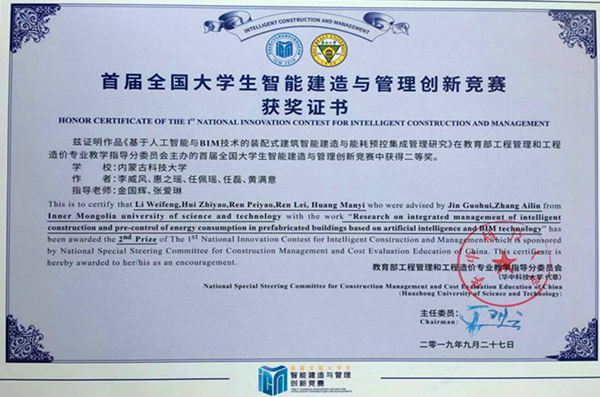 全国大学生智能建造与管理创新竞赛的意义在于打造教育、创新和创业三大平台。本次大赛由教育部工程管理和工程造价专业教学指导分委员会主办,东南大学、江苏省土木建筑学会承办,以智慧工地与可持续建设管理为主题,全国三百多支队伍报名参加了比赛。竞赛分为初赛、复赛、决赛及现场答辩四个环节,经过层层选拔,最终来自全国90多所高校、103支参赛队伍的近600名师生进入现场答辩环节。世界杯官网土木工程学院师生组成的代表队,凭借其优秀的作品《基于人工智能与BIM技术的装配式建筑智能建造与能耗预控集成管理研究》和精彩的现场答辩,在激烈的角逐中脱颖而出,取得了竞赛二等奖的好成绩。