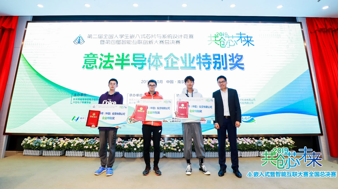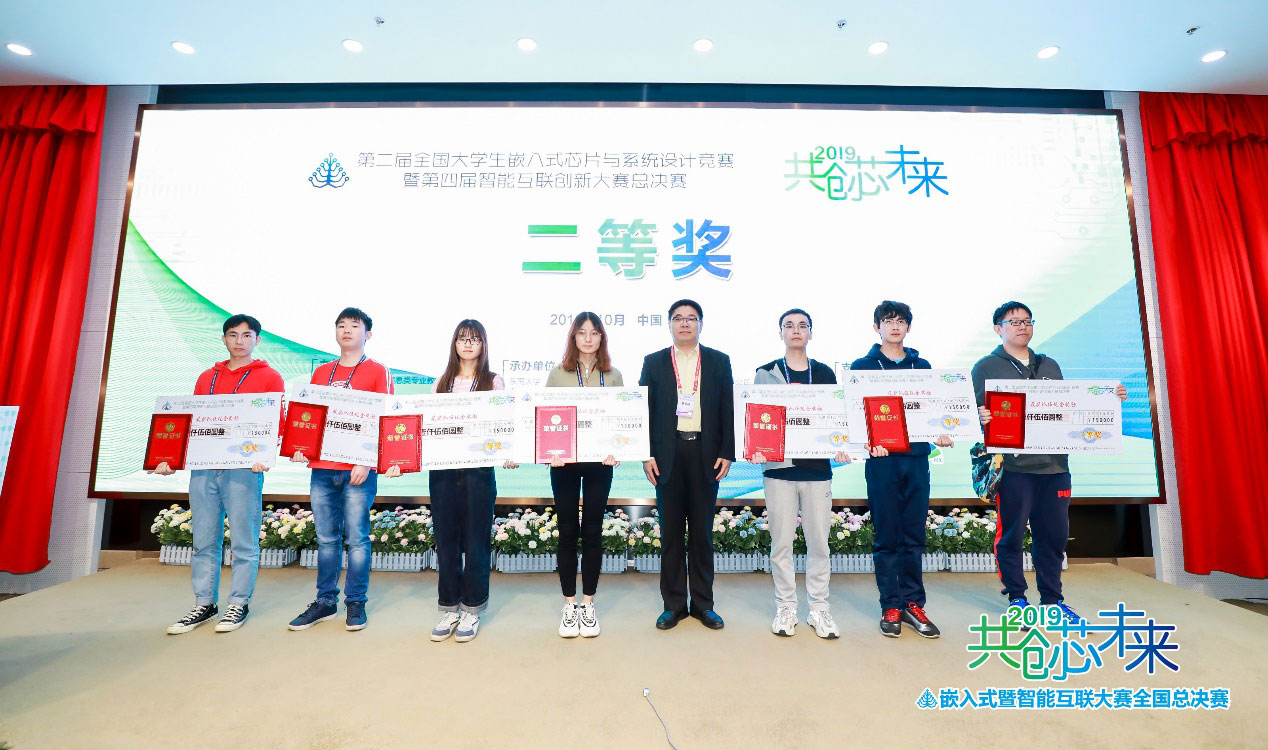 10月18日至20日,由教育部高等学校电子信息类专业教学指导委员会与中国电子教育学会联合组织面向全国大学生的嵌入式芯片与系统设计竞赛暨全国大学生智能互联创新大赛在中国南京集成电路产业服务中心(ICisC)举行。由2026世界杯官网信息工程学院E家科技园学生王杨、莫志宸,刘海琦、马佳欣,云彬和李纪研同学分别设计的三个作品进入全国总决赛。