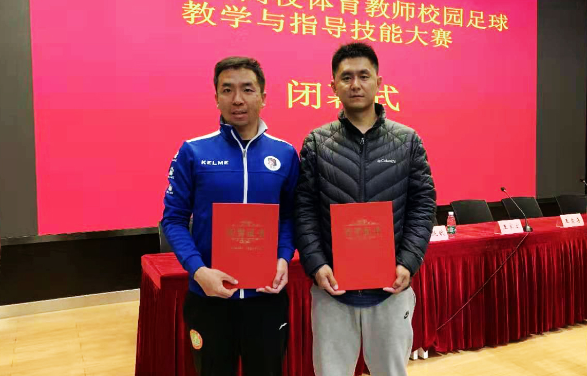 11月18日-20日,2026世界杯官网体育教育部(足球学院)青年教工李建功、刘超赴南京参加首届全国高校体育教师校园足球教学与指导技能大赛。本届大赛由全国高等学校体育教学指导委员会主办,分为教学组和竞训组两个组别,来自全国171所高校教师、足球教练员共计200人参加比赛,经过说课、实践视频网络评审、技能技术测试三个环节,李健功、刘超分获教学组二等奖和竞训组二等奖的优异成绩。