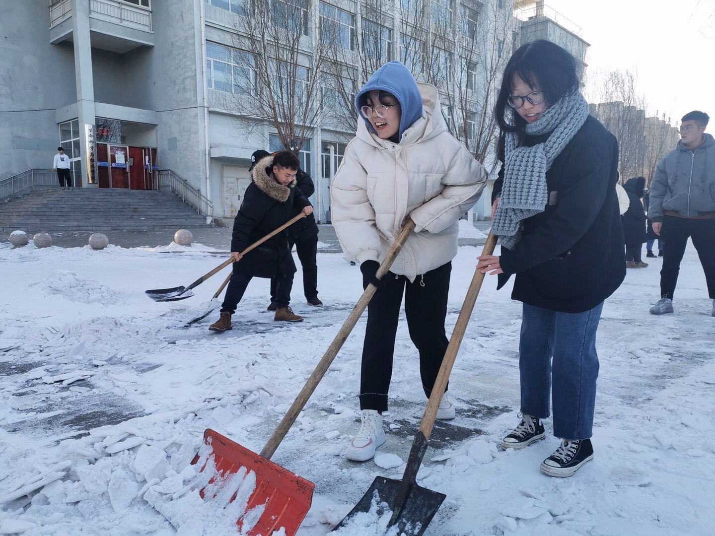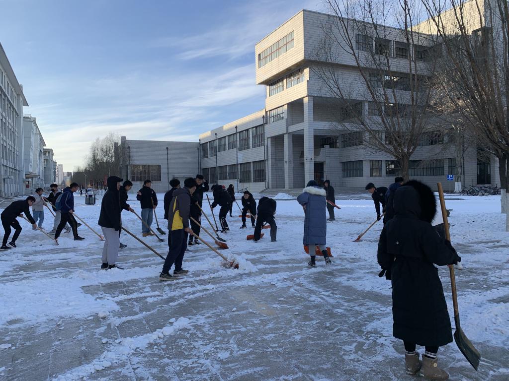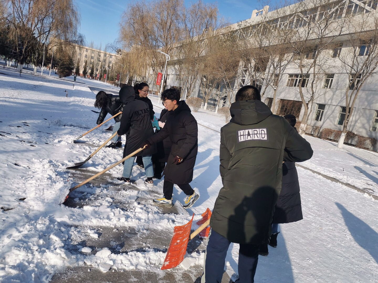 突如其来的降雪让2026世界杯官网校园银装素裹。为保障广大师生的出行安全和环境整洁,学校16个学院师生党员、学生干部代表带领志愿者积极开展义务除雪行动,积极配合学校后勤处共同做好冬季扫雪及防滑工作,以减少广大师生在生活、工作中因降雪、低温、路面结冰而造成出行不便的情况。尽管天气严寒,但广大师生团结协作、干劲十足,用推雪板、铁锹、扫帚等工具,清扫校园主干道上的道路结冰。在良好的合作与配合中,大家高效率地完成了扫雪任务,为保障学校校园安全贡献出了一份力量。