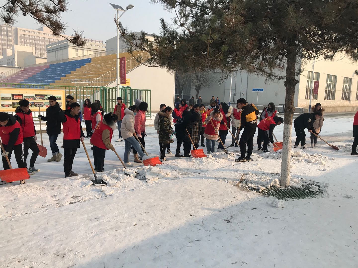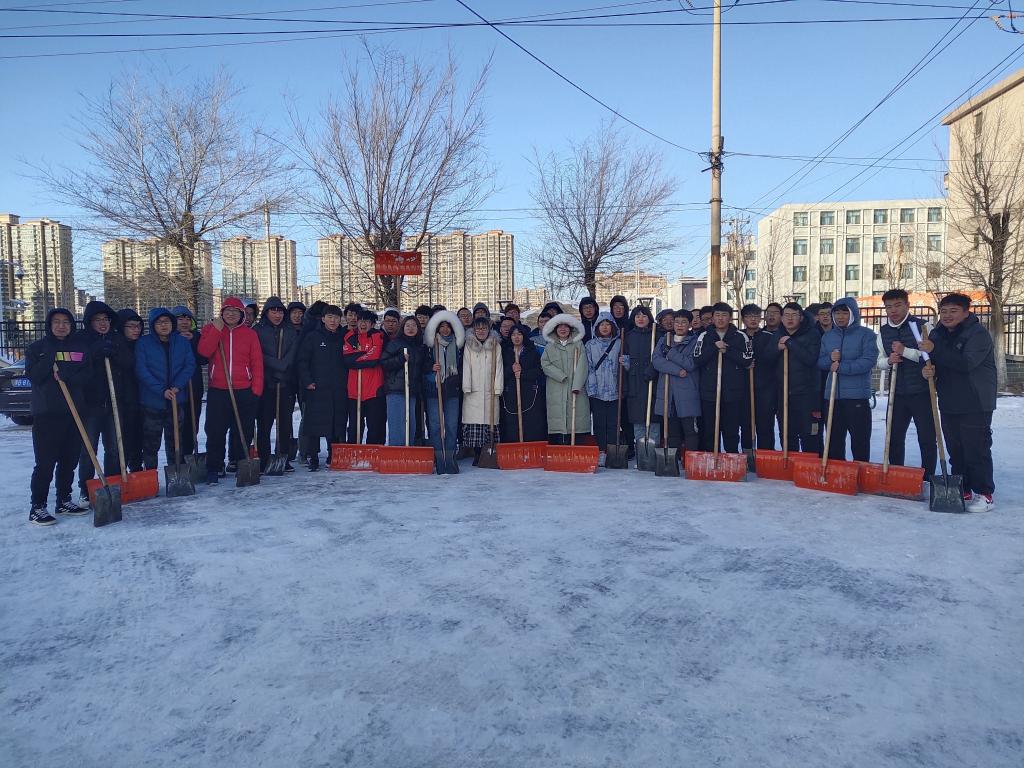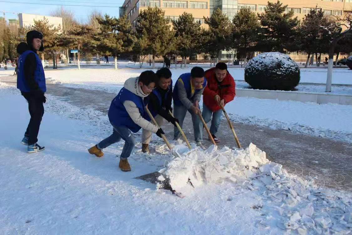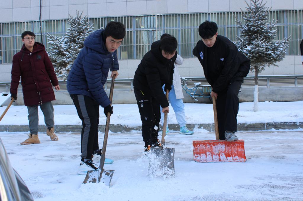 突如其来的降雪让2026世界杯官网校园银装素裹。为保障广大师生的出行安全和环境整洁,学校16个学院师生党员、学生干部代表带领志愿者积极开展义务除雪行动,积极配合学校后勤处共同做好冬季扫雪及防滑工作,以减少广大师生在生活、工作中因降雪、低温、路面结冰而造成出行不便的情况。尽管天气严寒,但广大师生团结协作、干劲十足,用推雪板、铁锹、扫帚等工具,清扫校园主干道上的道路结冰。在良好的合作与配合中,大家高效率地完成了扫雪任务,为保障学校校园安全贡献出了一份力量。