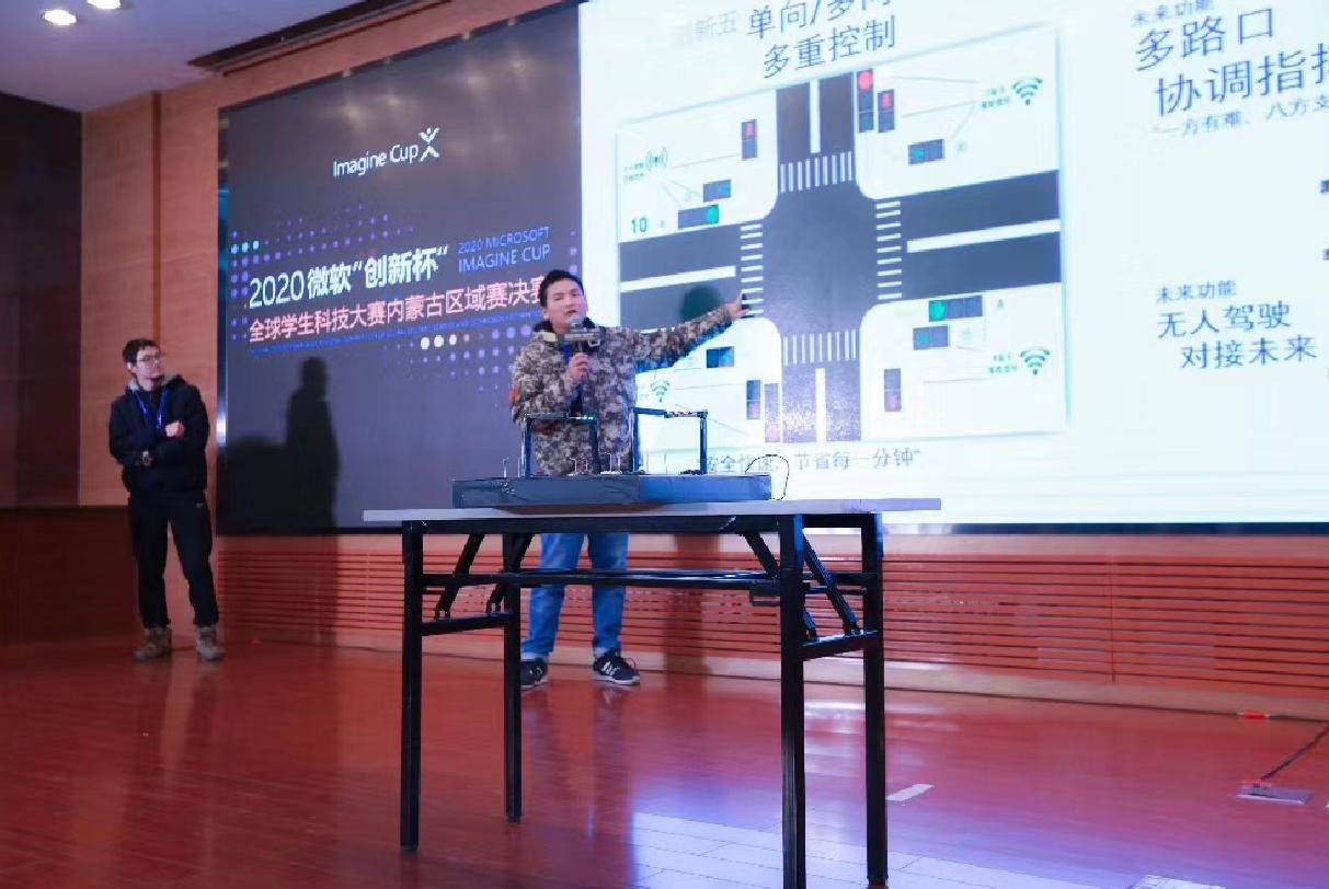 信息工程学院大四学生王杨、莫志宸组成的警鲤团队在指导教师赵宇红的指导和包头市交警大队的建议下,历时9个月时间设计制作了“应急式交通警察手势识别控制系统”,并获得了获得本次比赛中唯一的一等奖。此外该团队也将于12月15日,代表内蒙古自治区大学生参加于中国杭州举行的微软“创新杯”全国总决赛。