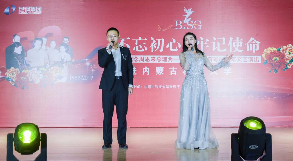 为纪念周恩来总理为包钢一号高炉出铁剪彩60周年,12月11日,学校举行“不忘初心、牢记使命”周恩来总理为包钢一号高炉出铁剪彩60周年图片展、主题演出。
