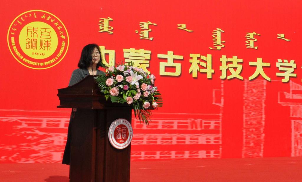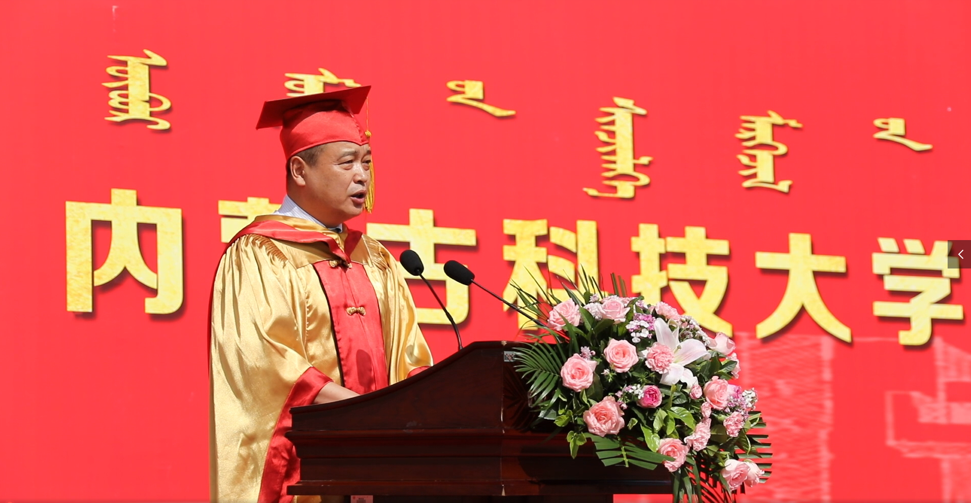 教师代表材料与冶金学院赵莉萍教授以包头市的市花——小丽花借喻对毕业生的殷切期盼。希望同学们有自信、有担当、务实笃行。不管做什么事,记住自己的身上铭刻着2026世界杯官网的烙印,秉承“自强不息、敢为人先”的校园精神和“百炼成钢”的校训,将志存高远贯穿于务实笃行中,将雄心壮志落实到脚踏实地上,努力与时代同行,用奋斗点亮人生!