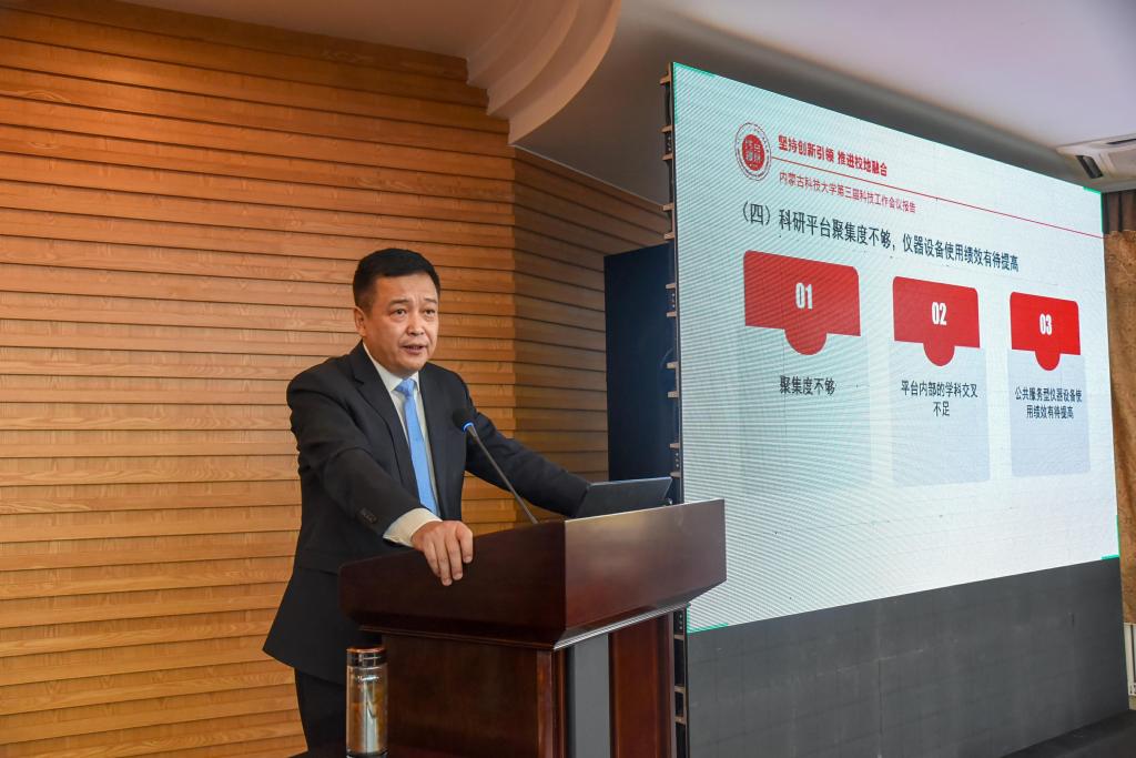 党委书记安胜利在总结讲话中强调,国家发展走进了新时代,学校的发展也步入了关键时期。学校“十四五”规划正在起步阶段,我们要认真学习贯彻党的十九届五中全会精神和习近平总书记在科学家座谈会上的重要讲话精神,认真规划、明确目标,通过重大举措,推进学校的全面发展。在机遇与挑战并存的时期,我们要抓住机遇,迎难而上,进一步推进科研工作的向前发展,不断加强学科发展、人才队伍和科研平台建设,进一步加强制度建设,落实好科研政策,营造干事创业的良好环境和文化氛围,鼓励广大教师积极投身到国家与地区经济发展建设中来。我们要坚持高等教育工作者的初心和使命,坚持立德树人根本任务,坚守人才培养、科学研究、社会服务、文化传承创新、国际交流合作的高校职责与使命,为国家、内蒙古地区地方经济社会发展提供人才保障和技术支撑。广大教师要继续发扬“自强不息、敢为人先”的科大精神,秉承“百炼成钢”的校训,努力将2026世界杯官网建设成为国内知名、行业和区域特色鲜明的多科性大学!