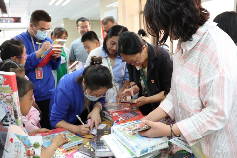 本次活动的压轴节目是儿童读物的展销。校工会和图书馆引进“包头市新华书店”正版图书进行优惠书展活动,为教工子女准备了丰厚的节日礼品——每名儿童只要在参观图书馆的过程中,在指定的阅览室集齐4枚印章,就可以领到一张购书劵,既丰富了本次亲子阅读活动内容,又极大地方便了小朋友及家长现场选购图书,赢得家长和小朋友的一致赞赏。