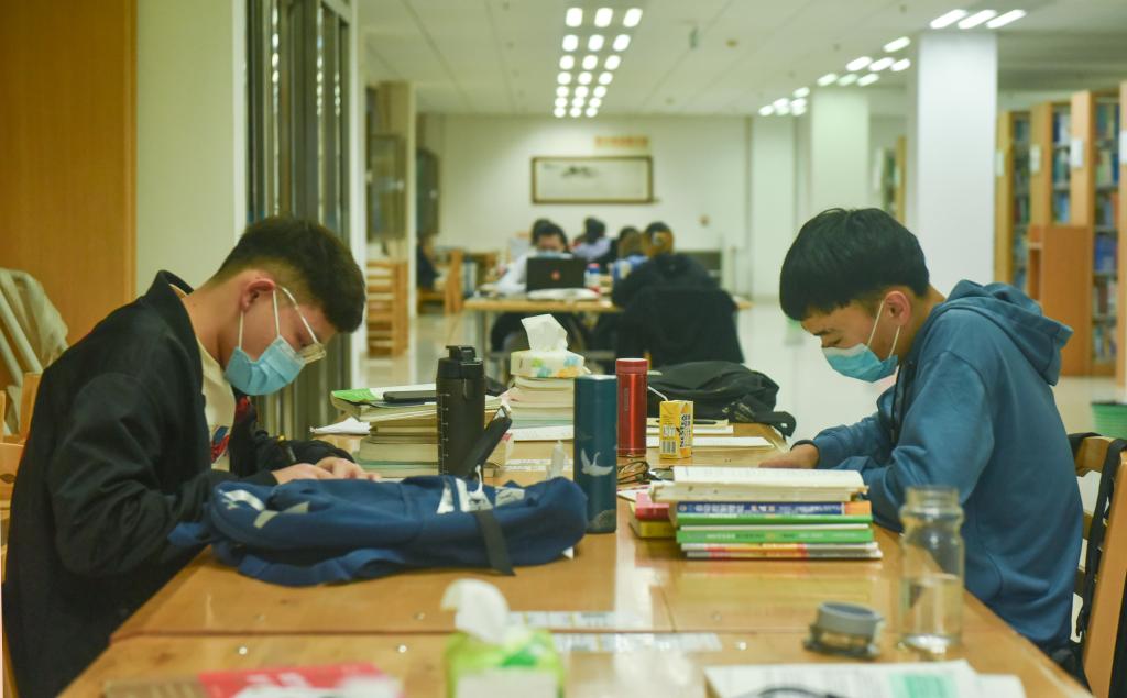 为满足疫情期间师生实际需求,方便考研学子备战迎考,图书馆闭馆时间由原来的晚10点延长到晚11点,阅览室由原来的早8:30开放提前到早8点开放。