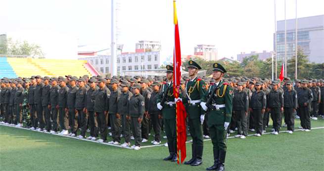 9月15日下午,世界杯官网2017级学生军训结训式在校田径场隆重举行。包头军分区副司令员韩秋岐上校、武警包头支队政委刘玉柱上校、包头市昆区人民武装部部长卢伟上校,校党委常委、副校长吕晓琪,校党委常委、副校长李斌,校党委常委、组织部部长冯志强,校党委常委、宣传部部长杨家庆,学生工作委员会、党政办公室、招就处、保卫处相关负责人出席结训式。
