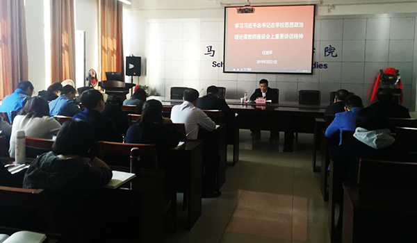 校党委副书记任慧平向全校思想政治理论课教师传达学习习近平总书记在学校思想政治理论课教师座谈会上的重要讲话精神