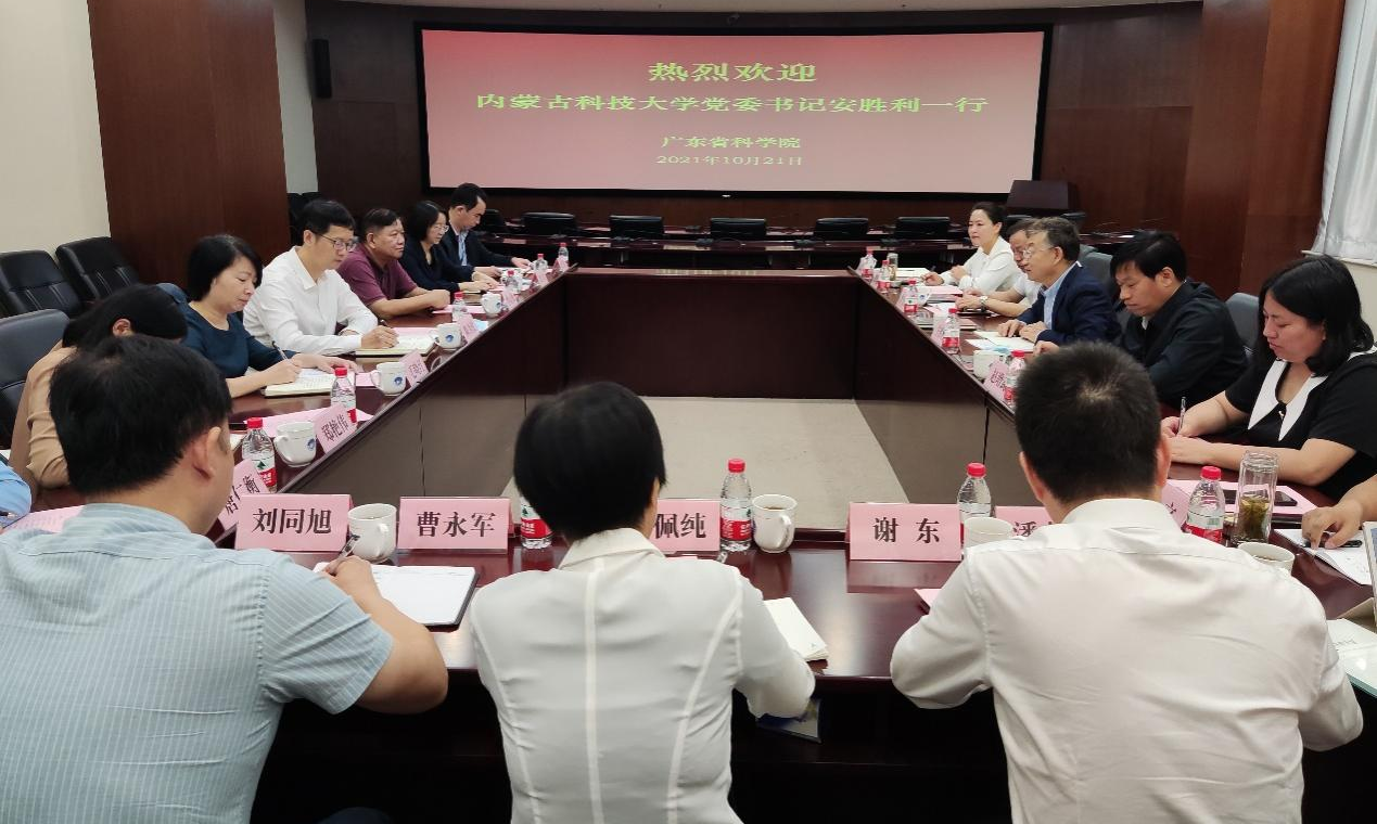10月21日-22日,校党委书记安胜利,副校长赵增武等一行七人赴广东省科学院考察,与广东省科学院党委副书记、院长陈为民,党委副书记颜国荣,副院长李定强,市场拓展部、相关研究所负责人座谈,就学校与广东省科学院在人才培养、科研合作与交流、科技成果转化、协同创新研究院和创新中心建设、科研团队共建等问题进行了深入交流。座谈会上,陈为民对安胜利一行到访表示欢迎,并介绍了广东省科学院战略规划和发展思路。李定强介绍...