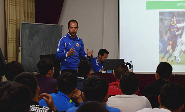 近日,世界杯官网体育部(足球学院)与包头市驰扬足球俱乐部合作,聘请该公司西班牙足球教练员团队为世界杯官网体育教育专业和校男子足球队进行足球培训。培训内容包括现代足球技战术发展趋势、战术训练理念、现代青少年足球训练体系和方法、国外高水平足球比赛实例技战术分析等理论课程;足球专项体能、技战训练等实践课程。西班牙足球教练员团队成员具有丰富的足球教学和训练经验,均持有欧足联教练员资格证书。团队进入世界杯官网开...